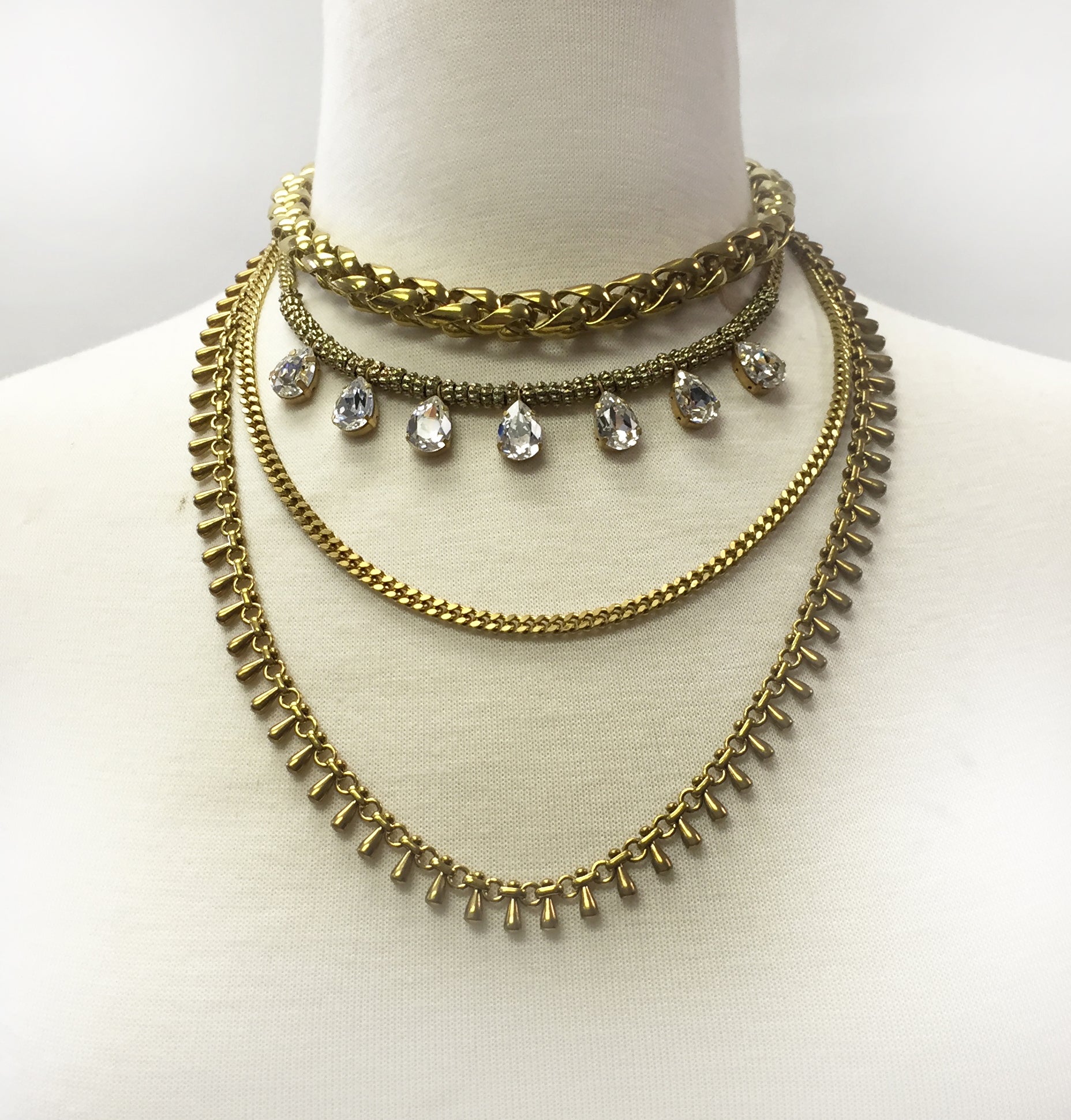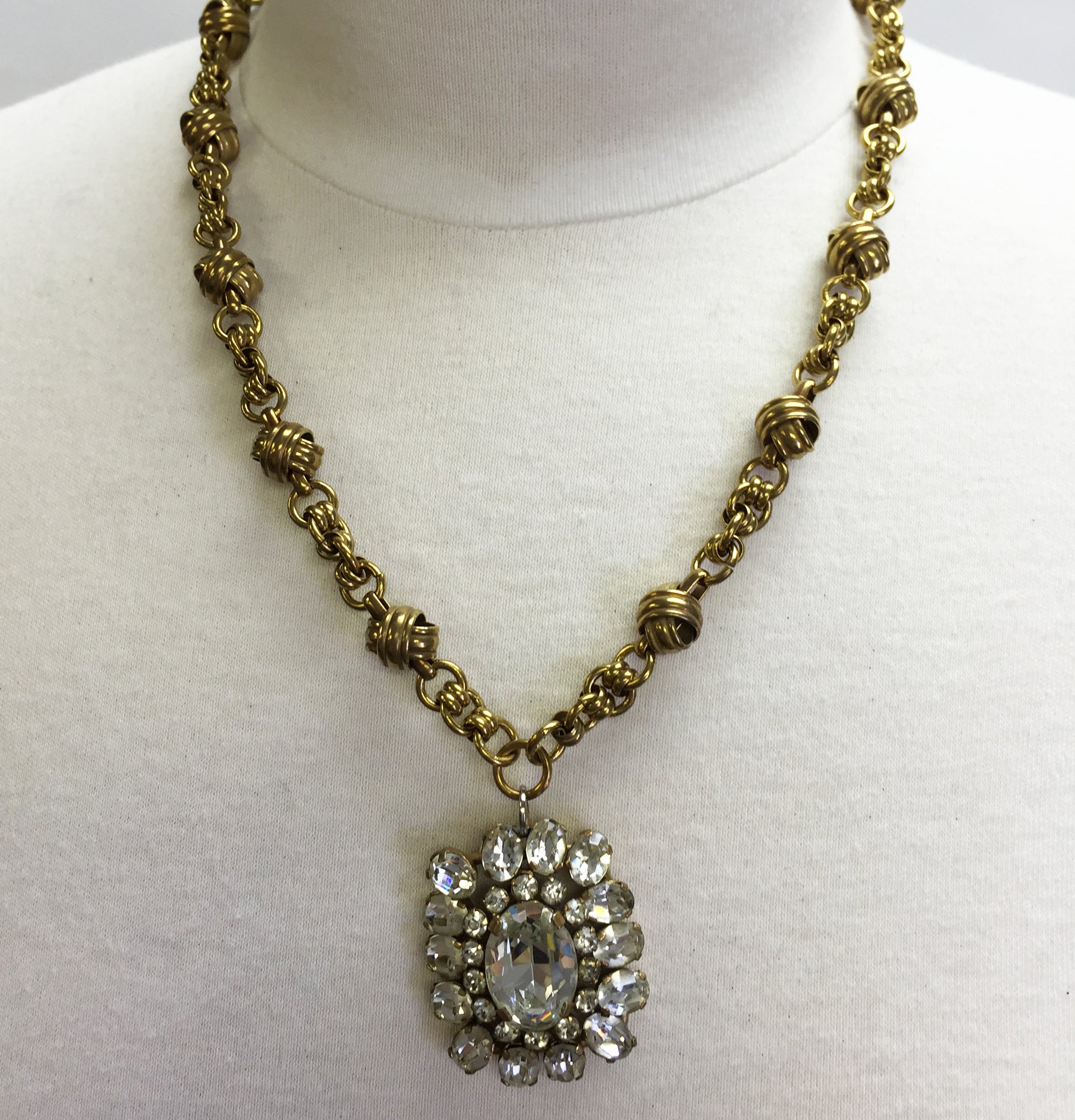 A unique shaped crystal pendant hanging from a looped gold brass chain. Another exquisite vintage pendant necklace. Less is more in it's true meaning.